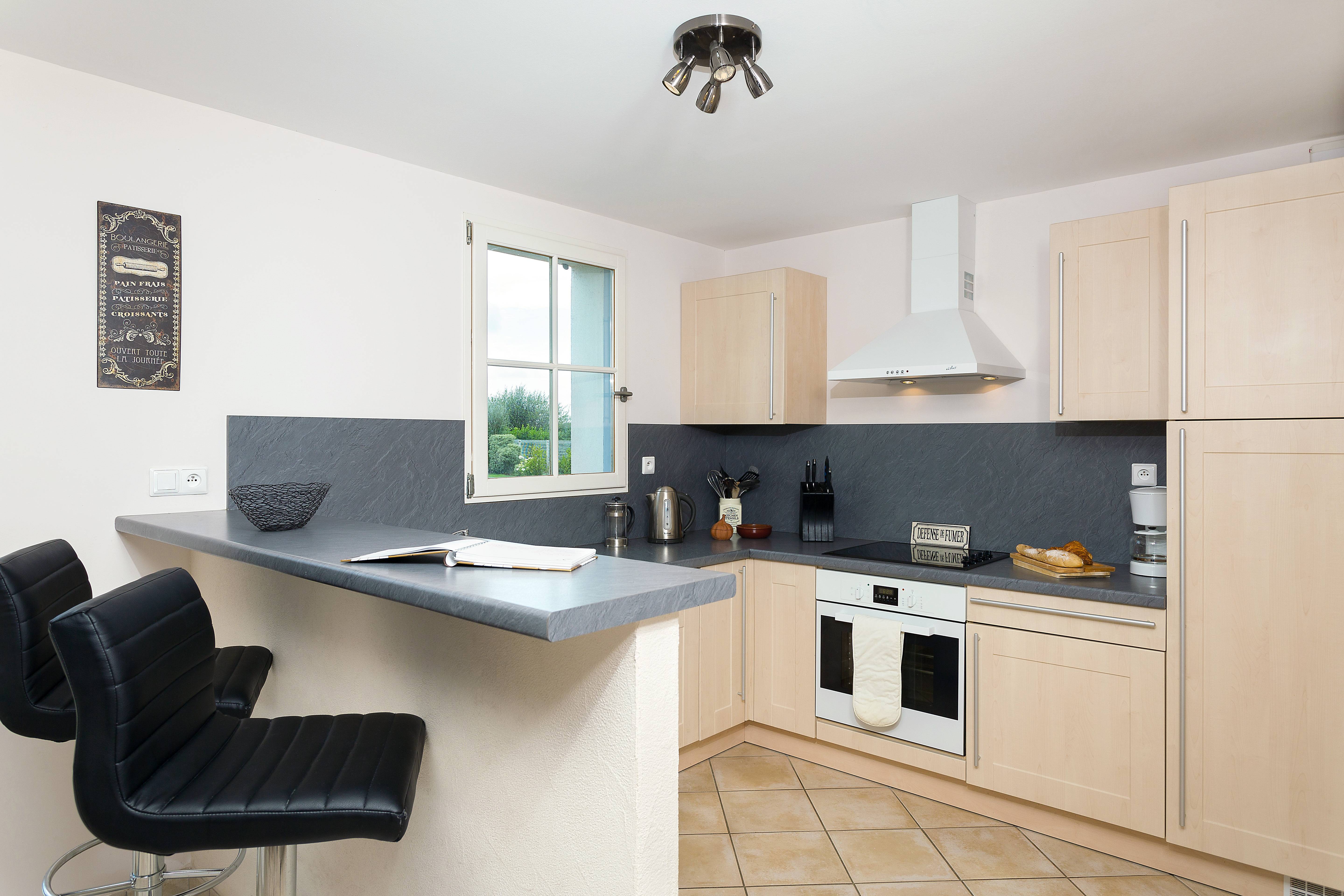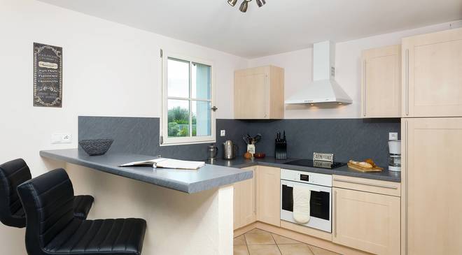 - une cuisine tout équipée avec plaques de cuisson, réfrigérateur/congélateur, hotte, et lave-vaisselle.